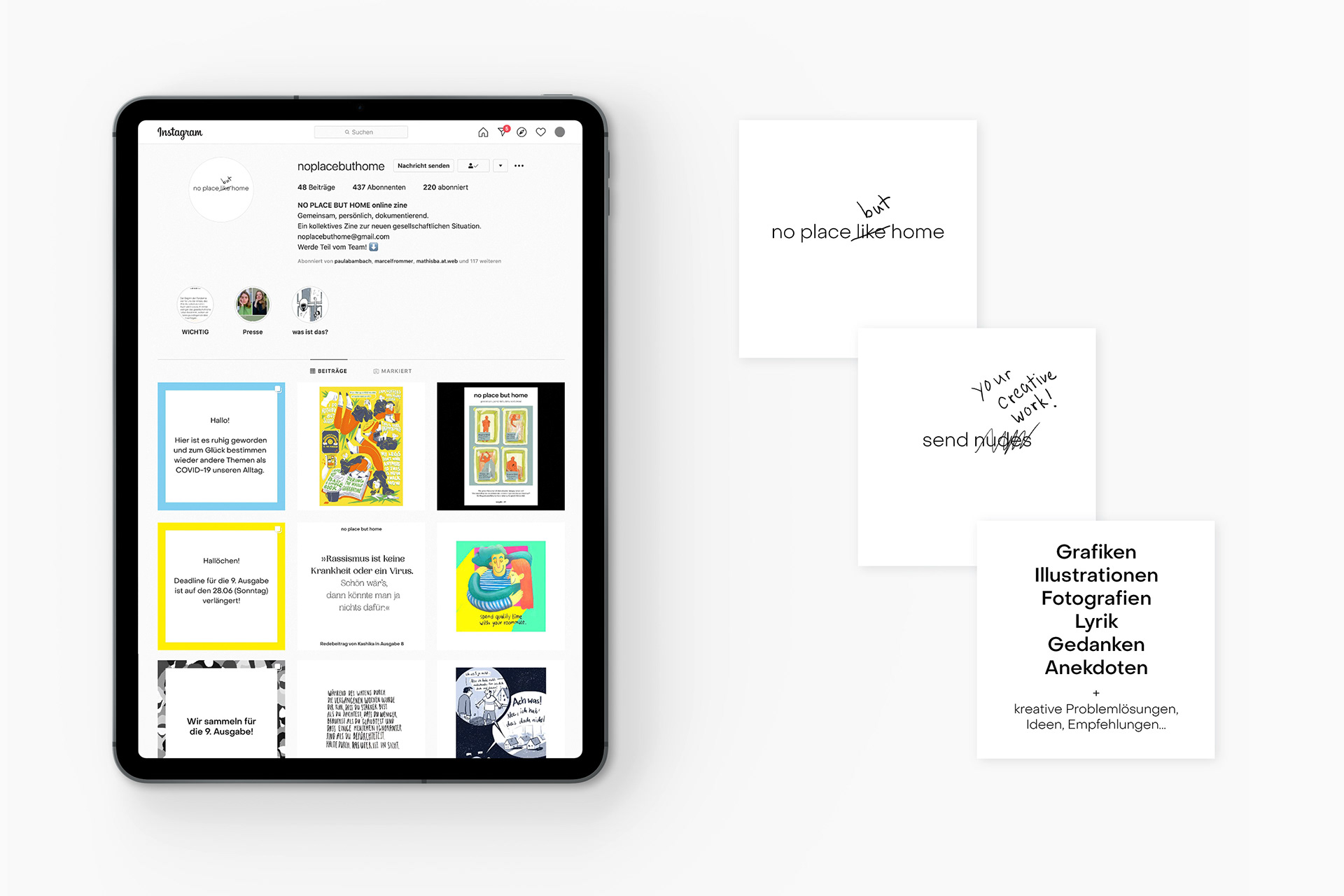 Über Open Calls auf Instagram haben wir die Arbeiten für die Ausgaben erhalten.